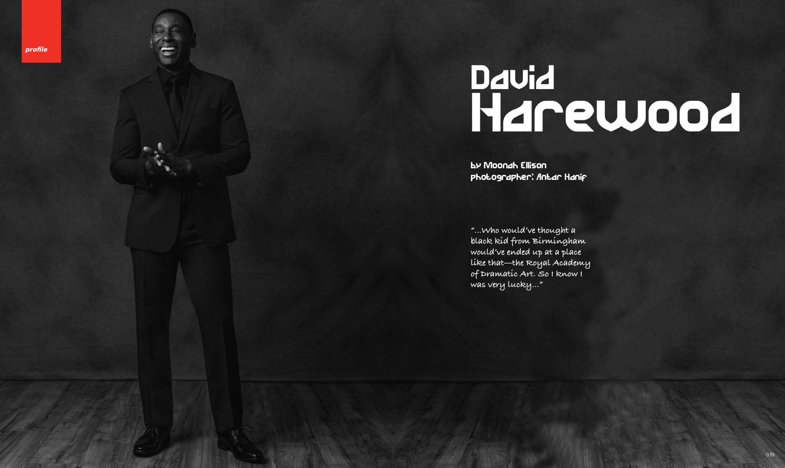 David HarewoodBy Moonah EllisonPhotography: Antar Hanif “…Who would’ve thought a black kid from Birmingham would’ve ended up at a place like that—the Royal Academy of Dramatic Art. So I know …