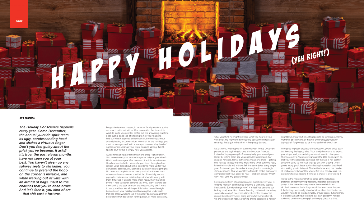 (Yeh Right!) By E Scrooge The Holiday Conscience happens every year. Come December, the annual yuletide spirit rears its ugly, condescending head and shakes a virtuous finger. Don’t you feel …