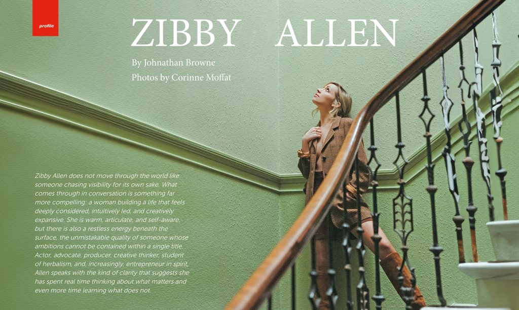 Zibby Allen does not move through the world like someone chasing visibility for its own sake. What comes through in conversation is something far more compelling: a woman building a life that feels deeply considered, intuitively led, and creatively expansive. She is warm, articulate, and self-aware, but there is also a restless energy beneath the surface, the unmistakable quality of someone whose ambitions cannot be contained within a single title. Actor, advocate, producer, creative thinker, student of herbalism, and, increasingly, entrepreneur in spirit, Allen speaks with the kind of clarity that suggests she has spent real time thinking about what matters and even more time learning what does not.